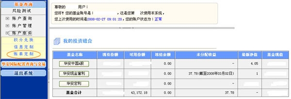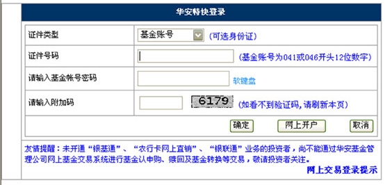1、登陆华安基金账户查询页面(或电子直销客户也可直接登录交易页面)。