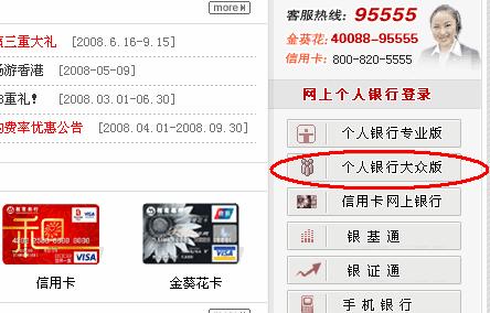 1、登录招商银行网上银行首页http://www.cmbchina.com/,点击"个人银行大众版";