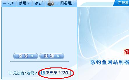 注:如客户已下载招行网银"安全控件",则可直接进行第二步的操作流程。