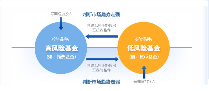 对趋势的判断规则是由公司来定的,但所参考均线的选择权在客户,对市场敏感度高的客户可选择更短期的均线,不那么敏感的客户可考虑长期的均线。我们提供了过去八九年的数据给客户体验,看哪种均线较适合自己。在做定投计划的时候,客户就要选择两只基金,一只是高风险的,一只是低风险的,然后在定投约定的时间,如果触发趋势变化,则就会自动转换。