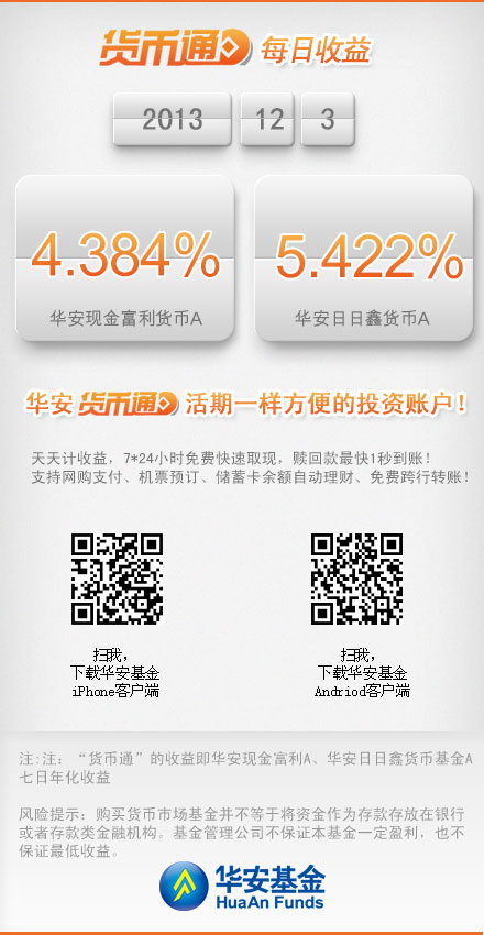 此外,投资者可以通过多种渠道购买货币基金,但考虑到资金的使用效率,银率网分析师建议投资者通过基金公司网上交易系统购买,也可以选择基金公司与第三方机构合作的理财产品。现在很多基金公司已经开通了货基即时赎回业务,但参与的条件是投资者必须通过基金公司网上交易系统购买货币基金,而不是通过银行、券商这样的渠道。