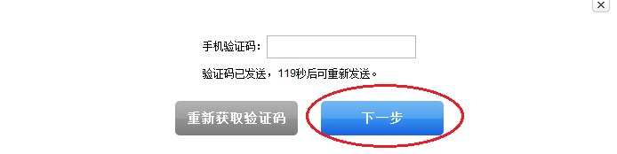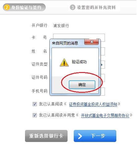4.利用在银行预留的手机号码,进行身份验证,验证成功后进入下一步 ;
