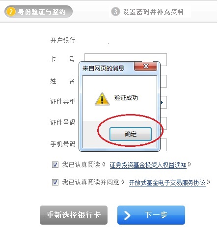 4.利用在银行预留的手机号码,进行身份验证,验证成功后进入下一步 ;