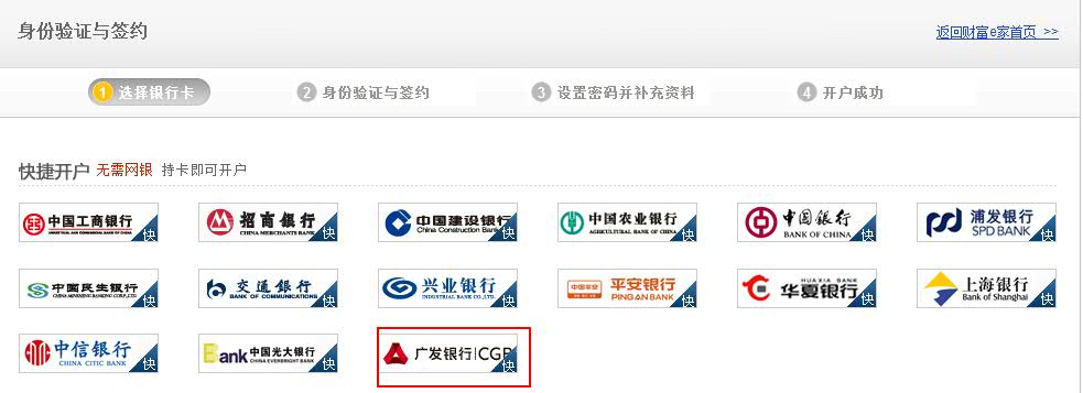 2. 点击“快捷开户-广发银行”图标进入;