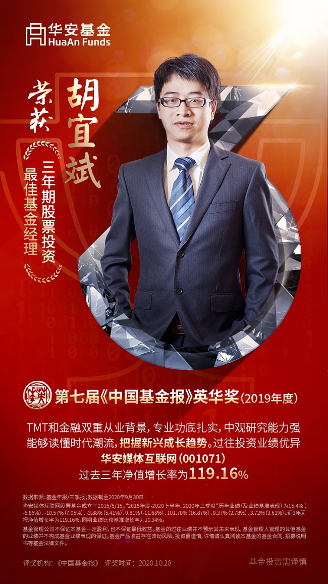 10月28日,由《中国基金报》主办的“第七届中国基金业英华奖”评选结果揭晓。华安基金权益、固收投资双丰收,旗下三位绩优基金经理收获荣誉:胡宜斌荣获“三年期股票投资最佳基金经理”;崔莹荣获“五年期股票投资最佳基金经理”;李邦长荣获“三年期纯债投资最佳基金经理”。