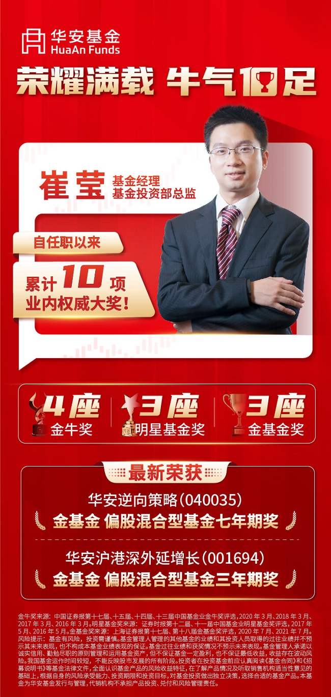 近年来,华安基金投研实力进一步提升,公司“中生代”基金经理崛起,此次获奖的华安逆向策略、华安沪港深外延增长均由“中生代”优秀代表崔莹管理,他拥有12年证券从业经验,管理基金产品近6年,现任华安基金基金投资部总监。